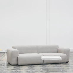 The Float collection comes in four versions: a one, two and three-seater sofa, as well as an L-shaped option. The collection is modular and the individual components are designed to be combined in a multitude of comfortable configurations. The Float Sofa system can be further customised with a range of accessories, including a backseat, headrest and a series of pillows that can be arranged in different layouts to give the sofa a different look and function. Float is also available with optional built-in wooden sides tables, which come in in two sizes, an ancestral element that De Lucchi sees as inextricably linked to the idea of the home and of handmade construction.