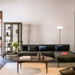 In 1939 Arne Jacobsen and Flemming Lassen won an open competition to design a new town hall, a new library, and a theatre in Søllerød (Rudersdal). For the town hall, they designed a wedding room with accompanying furniture – including a sofa for the waiting area for the couple to sit in before getting married. Designed for solemnity, the appearance of the sofa was shaped with high vertical backs and sides.